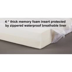 - Designed with an insert made from 2” of support foam and 2” of high-density memory foam for extra support and comfort.