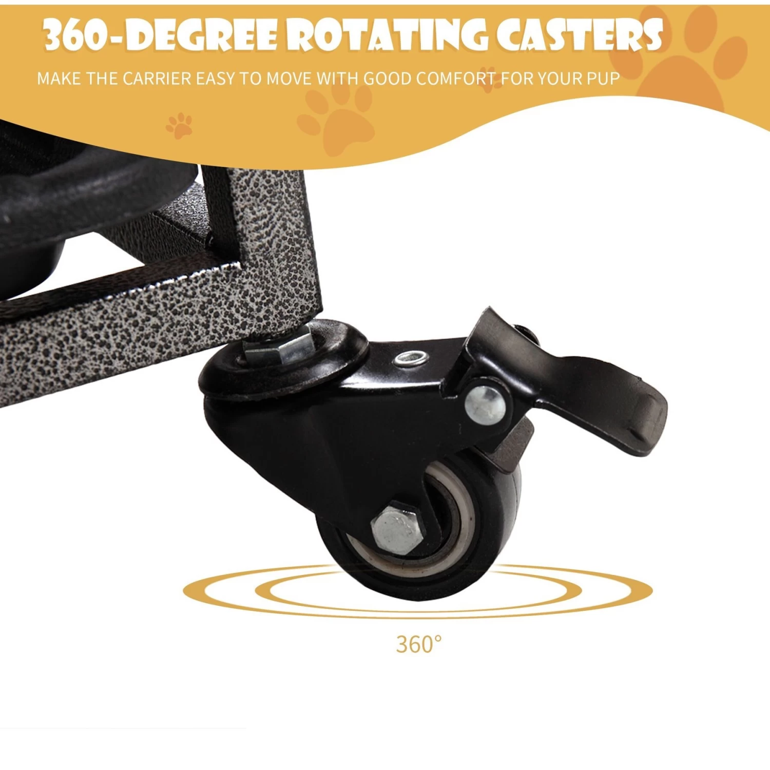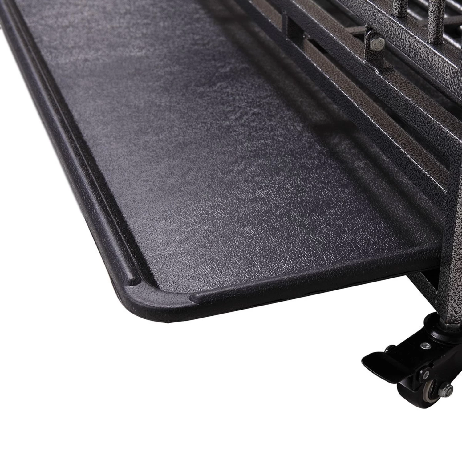 - Half of the 360-degree casters lock in place for a secure setup.