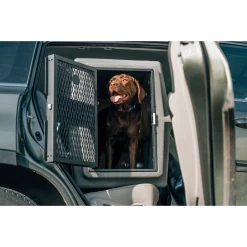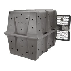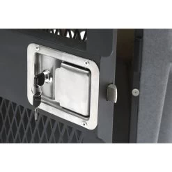 - This durable dog crate features a heavy-duty, military-grade design.