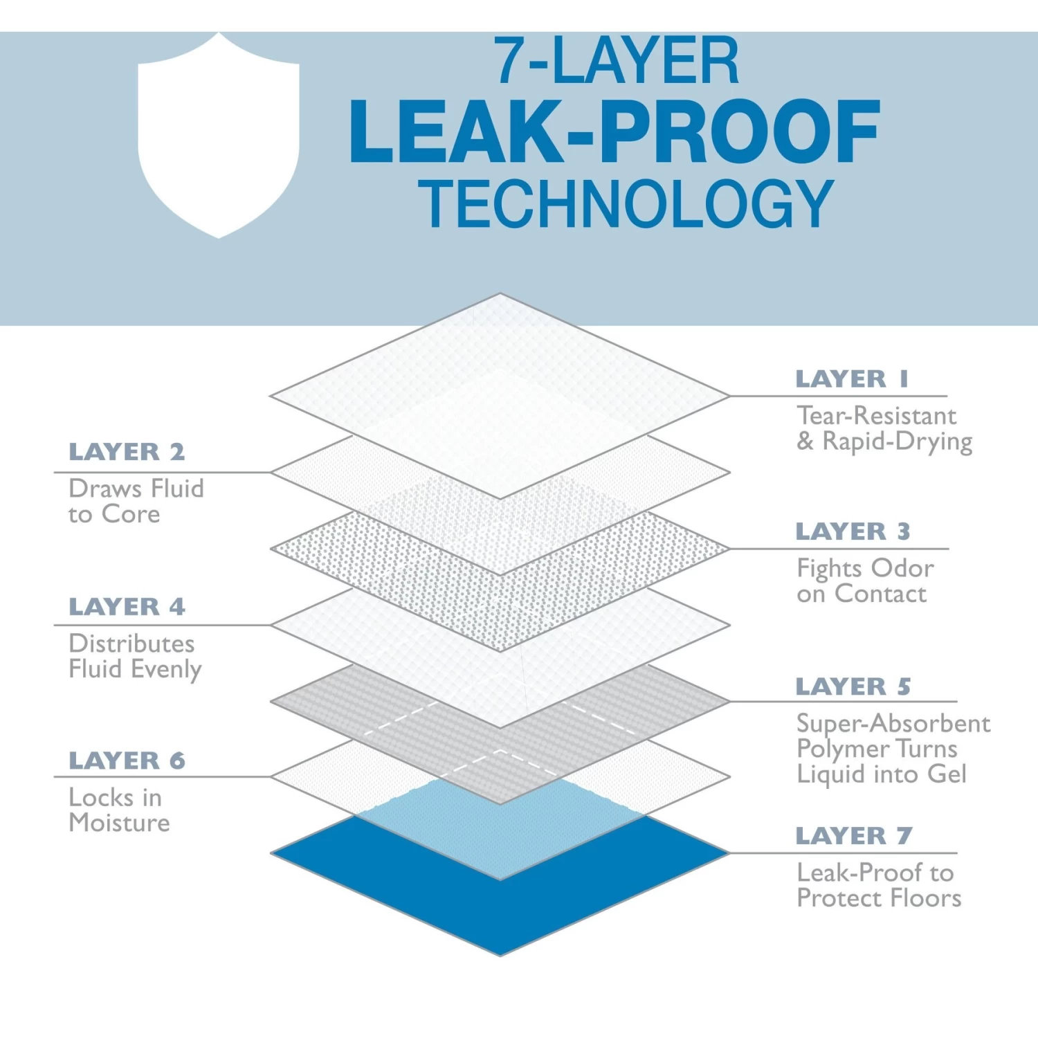 - Four Paws’ exclusive Seven-Layer Floor Armor Leak-Proof System works to draw fluids into the core and lock in moisture.