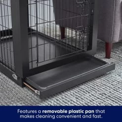 - Clever design blends the function of your dog’s crate with the utility and look of your home décor.