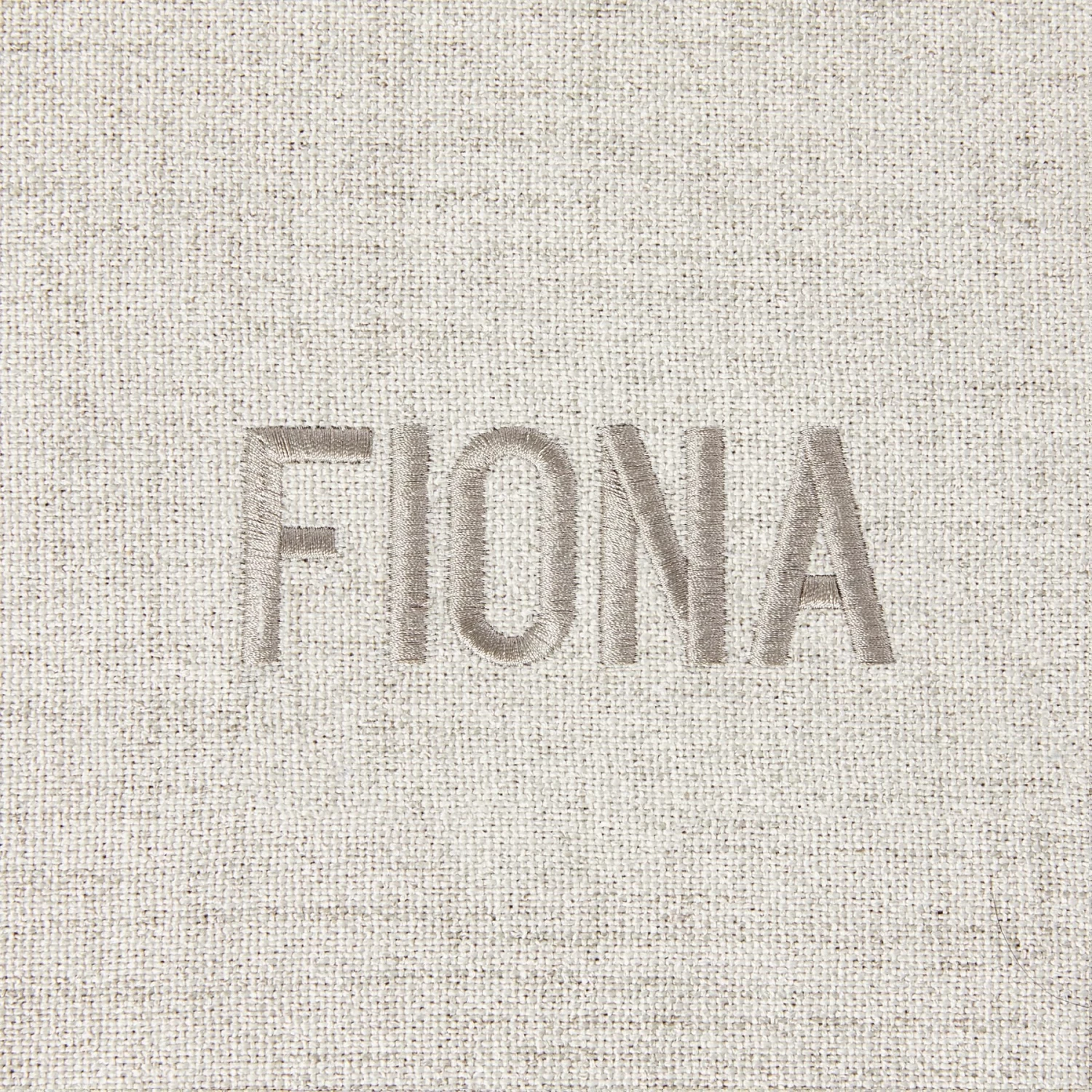 - Customizable with your choice of light gray or taupe thread and flair script or block cap fonts.