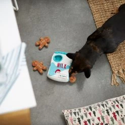 - This holiday milk and cookies hide-and-seek toy comes with a milk carton base along with three sweet gingerbread cookie toys. It makes a great gift to show your furry friend how thankful you are to have them with you during the holidays.