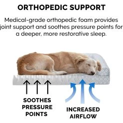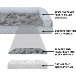 - Features triple bolsters and an orthopedic foam base to help support joints and pressure points.
