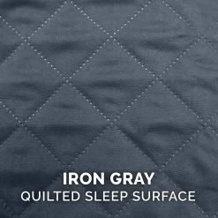 - Sofa-style pet bed with a smooth, quilted sleeping surface.
