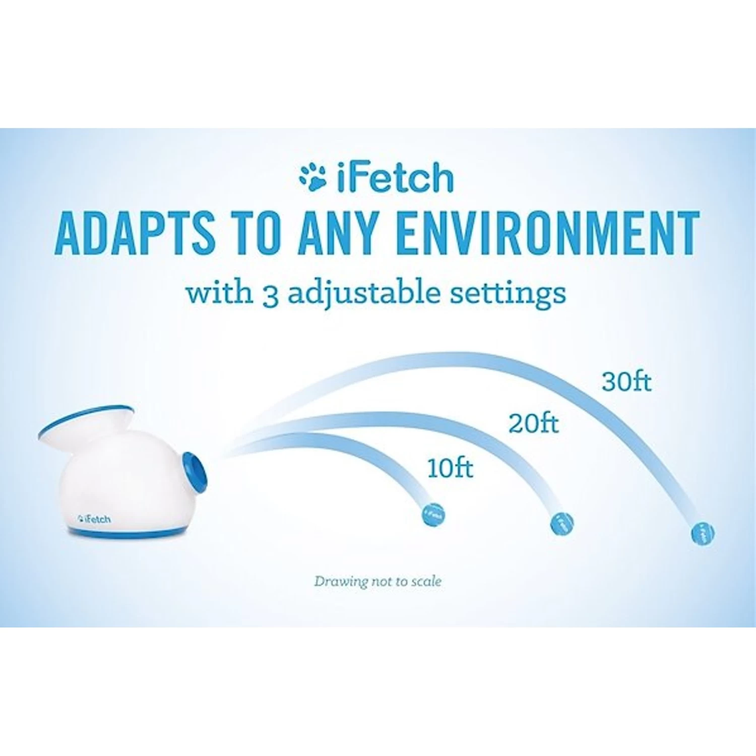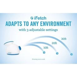 - Launches the ball 10, 20 or 30 feet, which can easily be changed with the push of a button.