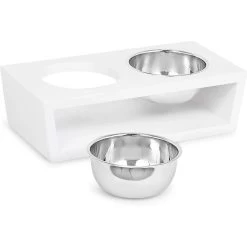 - Comes equipped with 2 stainless-steel, dishwasher safe bowls for food and water—both bowls hold 16 ounces each and are easy to remove.
