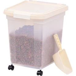 - These plastic pet food storage bins with an airtight seal lock in freshness and keep pests, moisture and humidity out.
