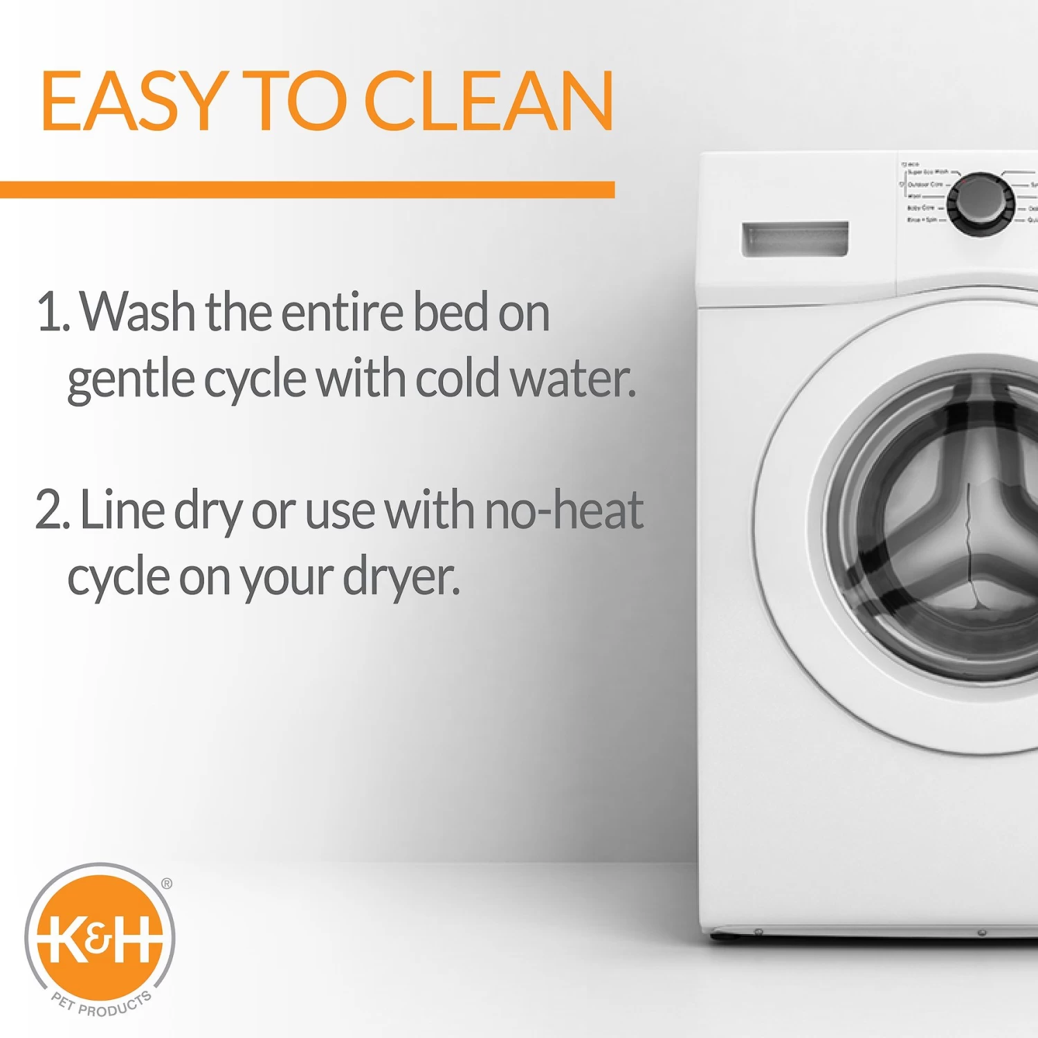 - Easy to clean, just wash in on the gentle cycle with cold water and hang to dry or use the no-heat cycle on your dryer.