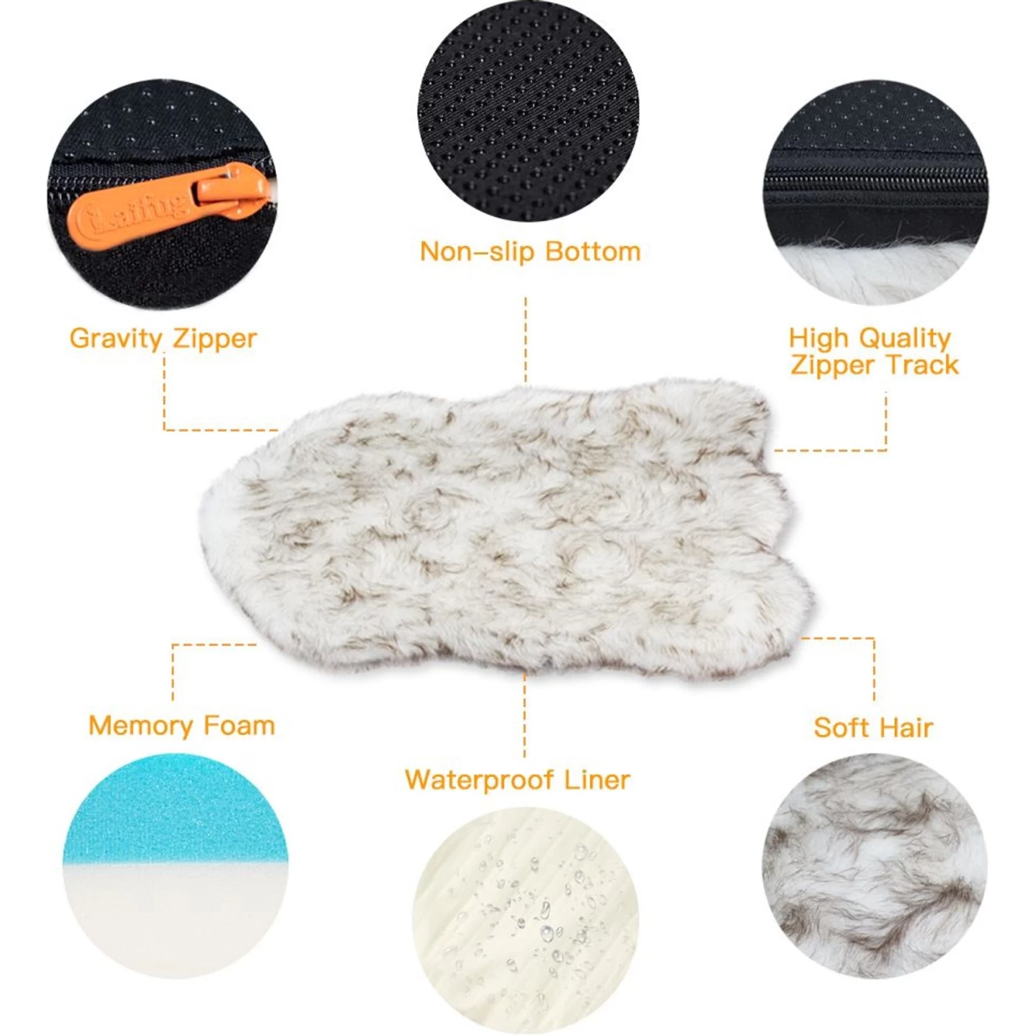 - The luxe faux fur cover adds cozy comfort and warmth while the anti-slip bottom prevents slips and slides.