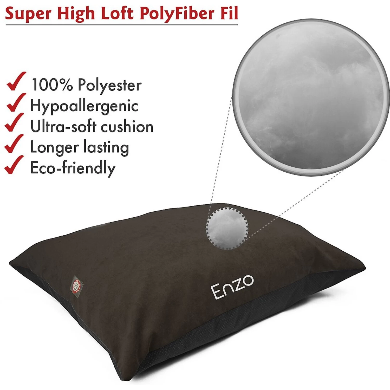 - Stuffed with a hypoallergenic, high loft polyester fill to keep your furbaby comfy and cozy.