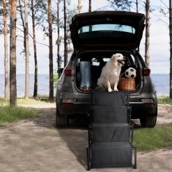 - Portable pet stairs help your dog safely climb and enter your vehicle, bed and other hard-to-reach areas.