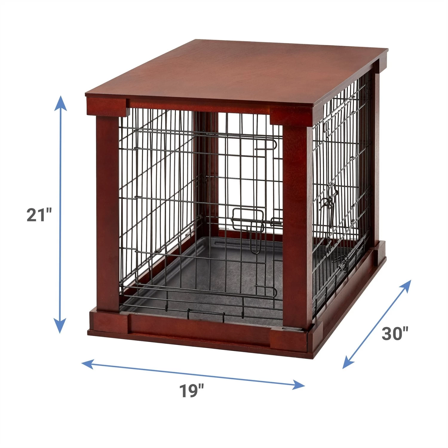 - Mahogany wood panels offer a stylish way to keep your dog or cat safely confined indoors.