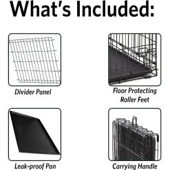 - Includes a free divider panel, leak-proof plastic pan, a strong carrying handle and rubber feet to protect your floors.