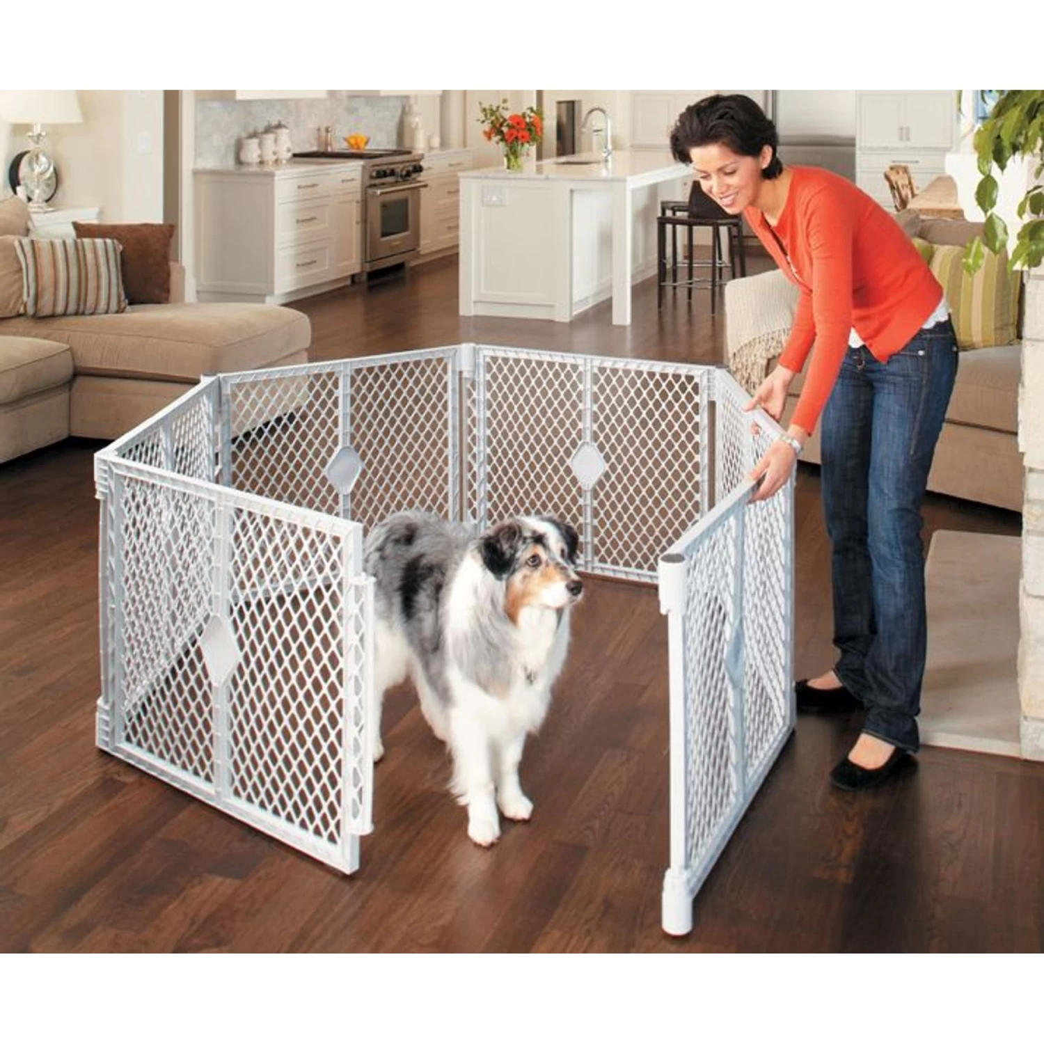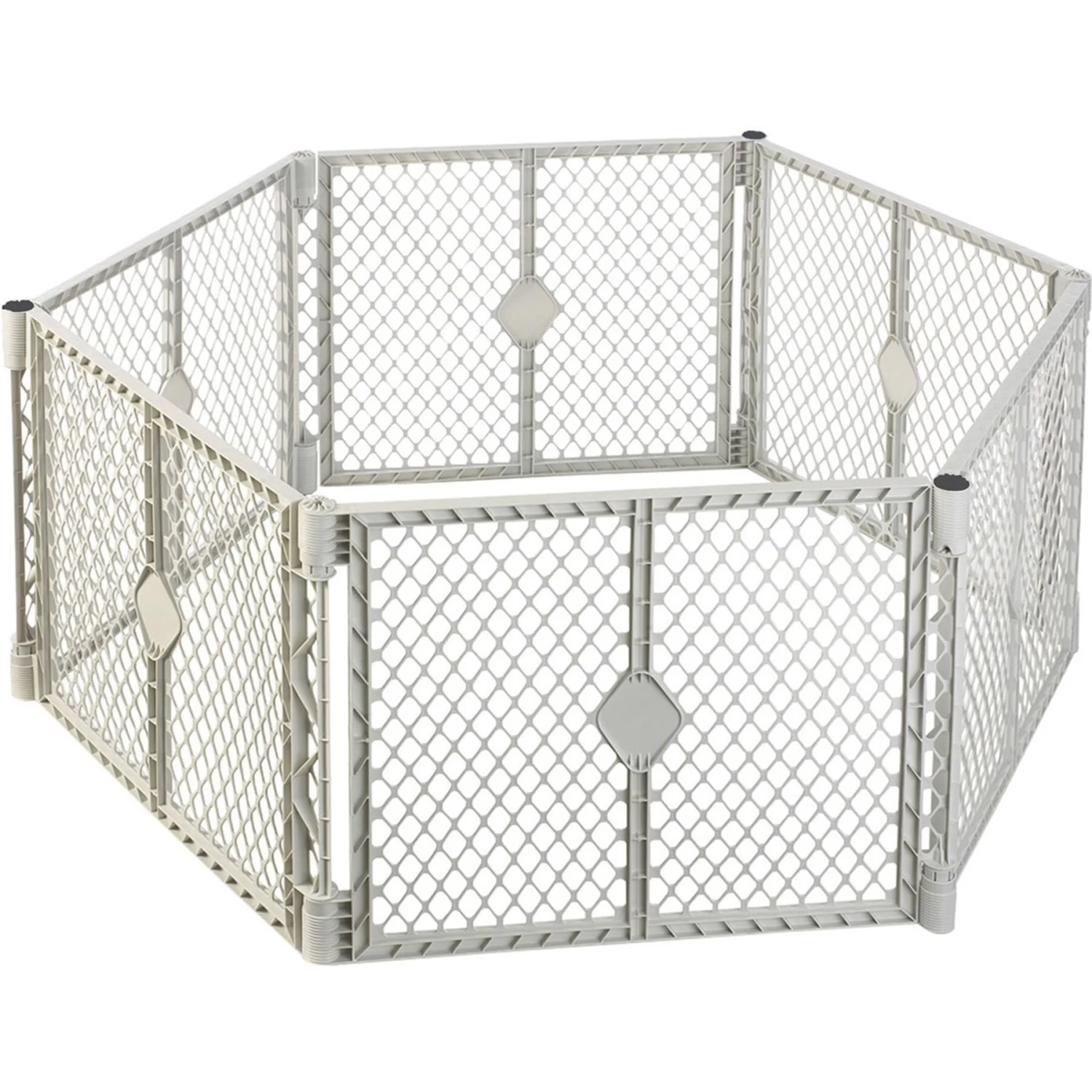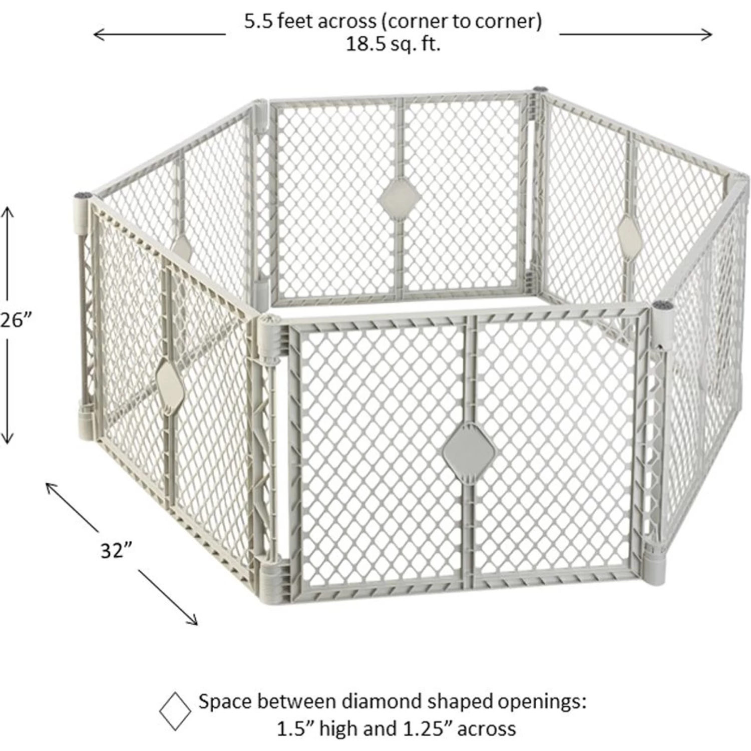 - Features six interlocking, expandable panels that allow you to easily change the size and shape with encloses up to 18.5 square feet and is 26 inches high.