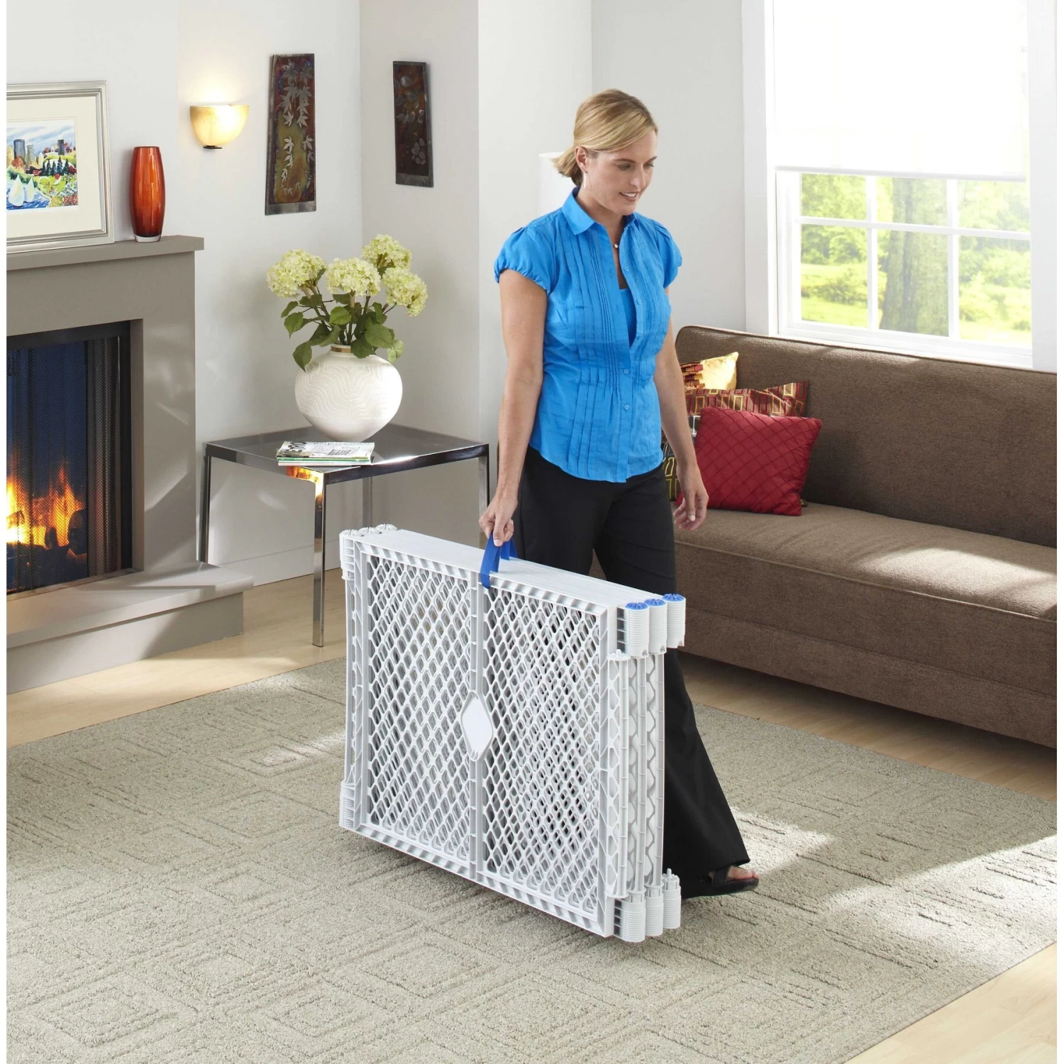- Durable, light grey plastic panels are easy to clean, and fold up fast for easy travel with carrying straps.