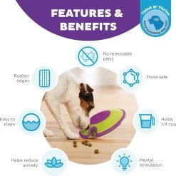 - Great for independent learning, the Treat Maze can easily be filled with treats on both sides of the saucer to exercise your dog’s mind.