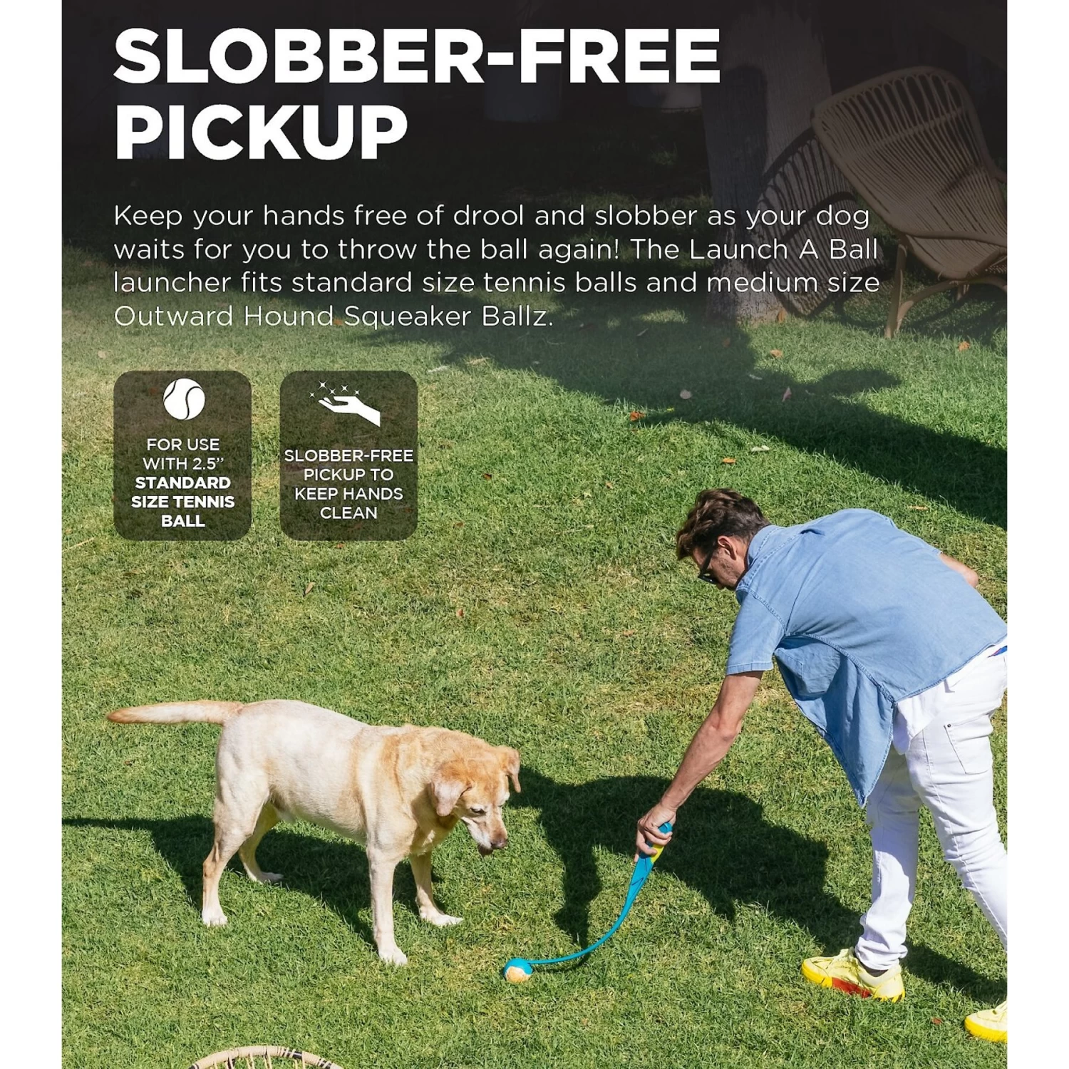 - Allows you to retrieve balls without transferring slobber to your hands.