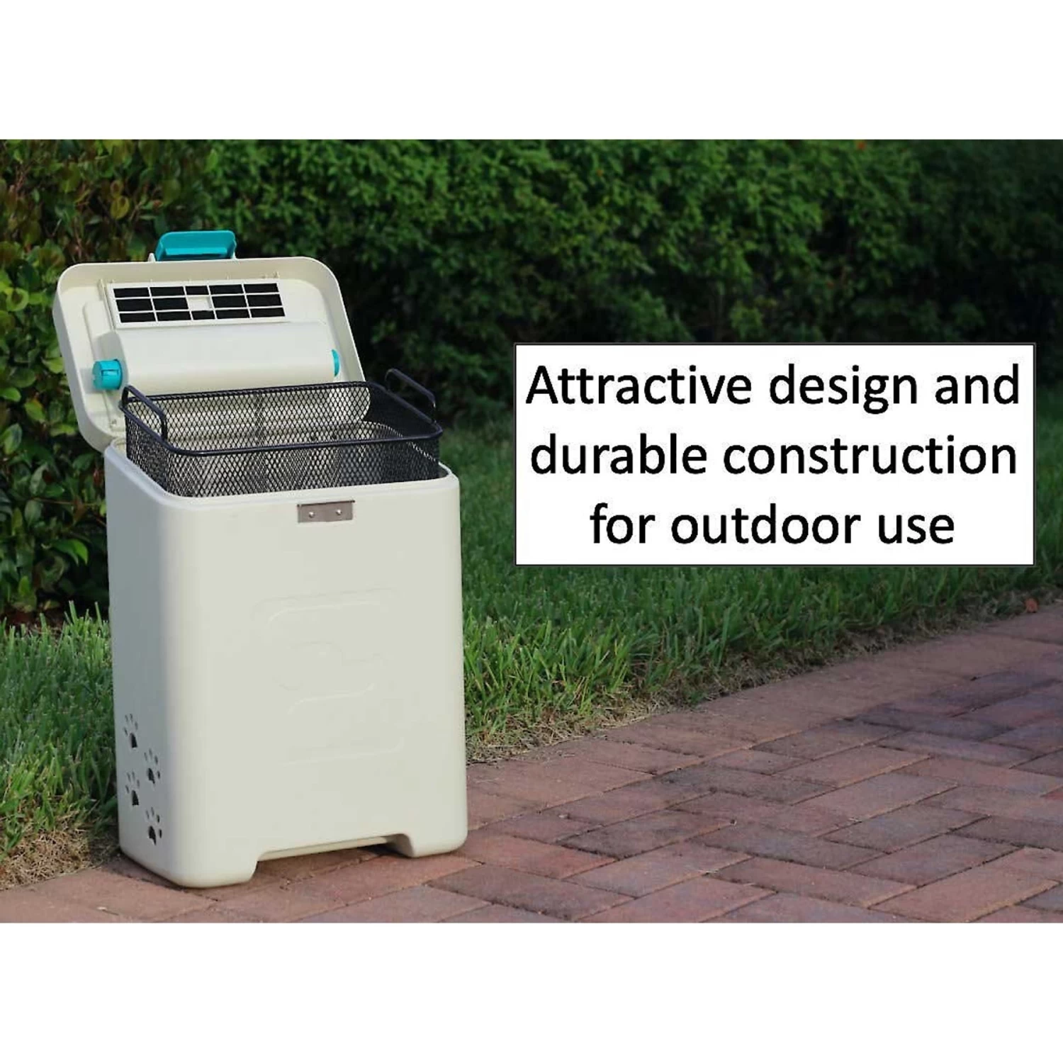 - Stores and dispenses your pet’s waste bags.