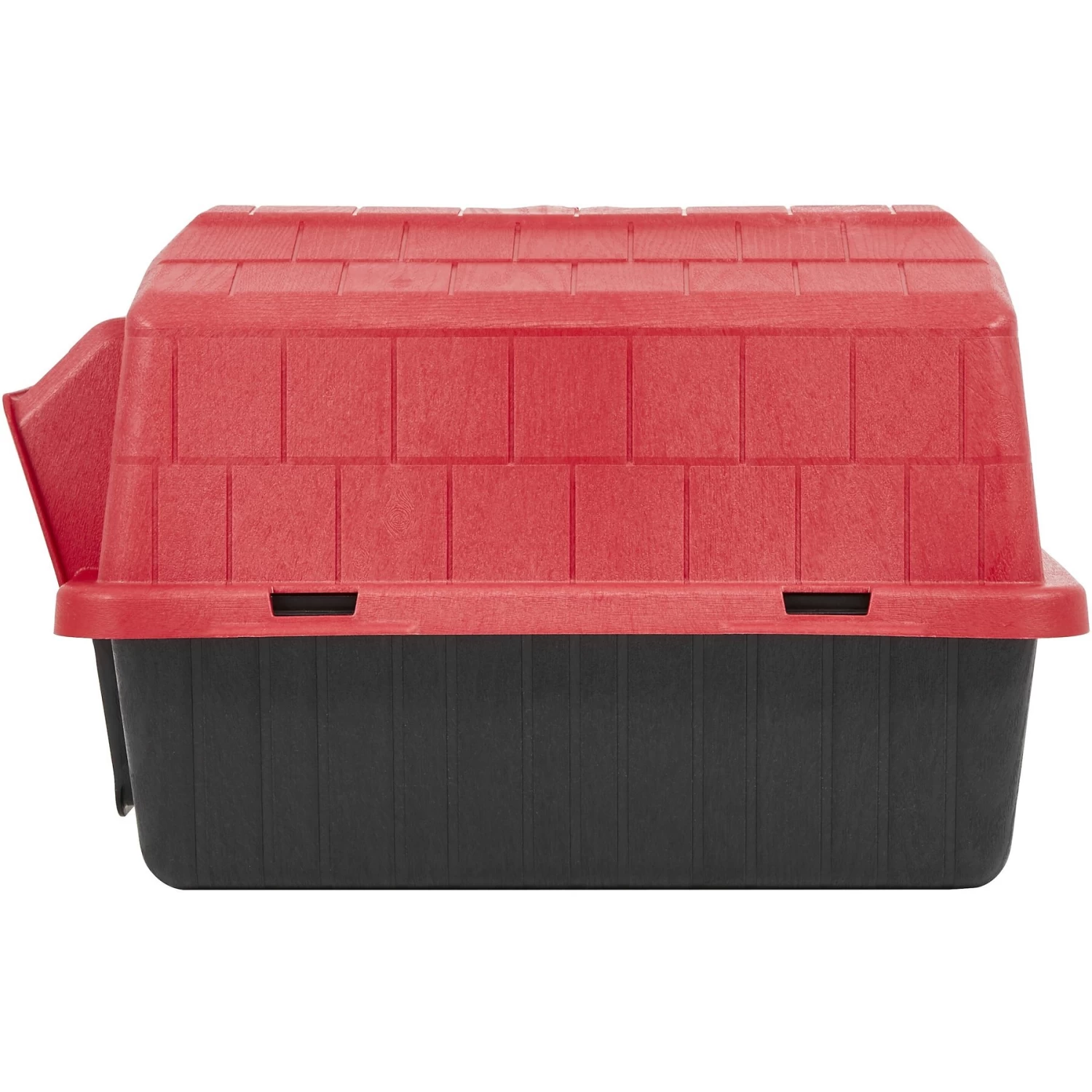 - Tough plastic dog house won’t rot, will never need a new roof, and cannot become flea-infested.