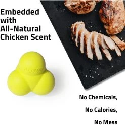 - A 100% all-natural chicken scent is embedded into the toy using Encapsiscent Technology—this helps increase engagement without the need for fattening treats.