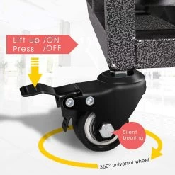 - The 360-degree wheels allow for easy portability, while the included locking casters allow for stationary stability when needed.