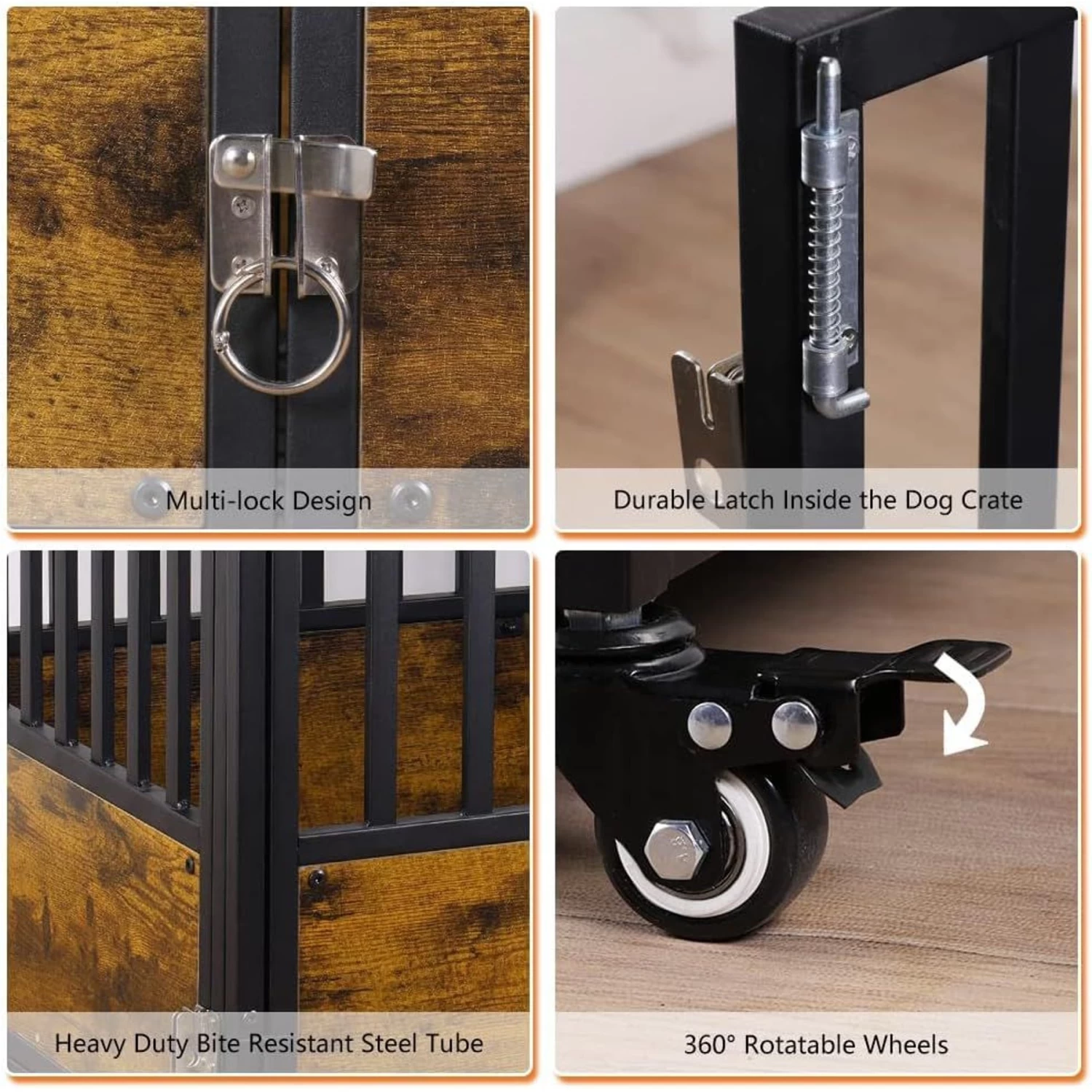 - 4 360-degree rolling wheels make it easy to move the crate around as needed.