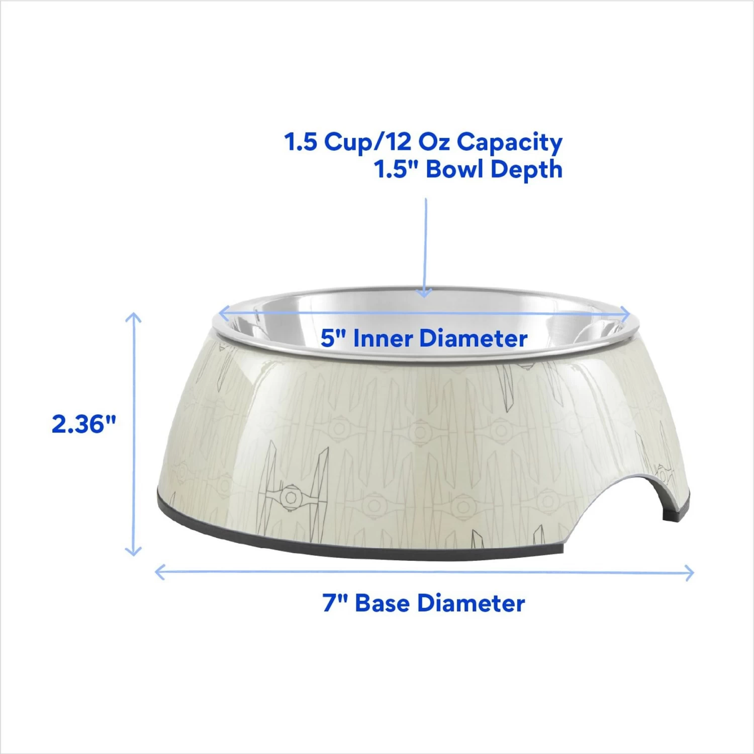 - Cool Tie Fighter design brings STAR WARS fandom to your pet’s dinnerware.
