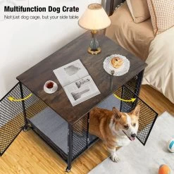 Aivituvin Side End Table Furniture Style Dog Crate With Tray, Cushion & Casters